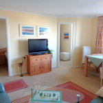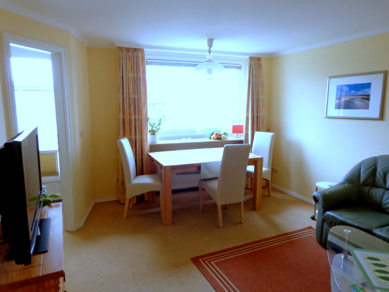 Als Besonderheit dieser Wohnung ist die gute Raumaufteilung zu nennen: separate Küche, separater Flur und abgeschlossenes Schlafzimmer. Und - als Highlight - der Esstisch am Fenster mit Meerblick.